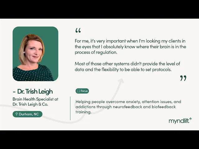 Dr. Trish Leigh & Co uses Myndlift to help individuals overcome anxiety, attention issues, and addictions.